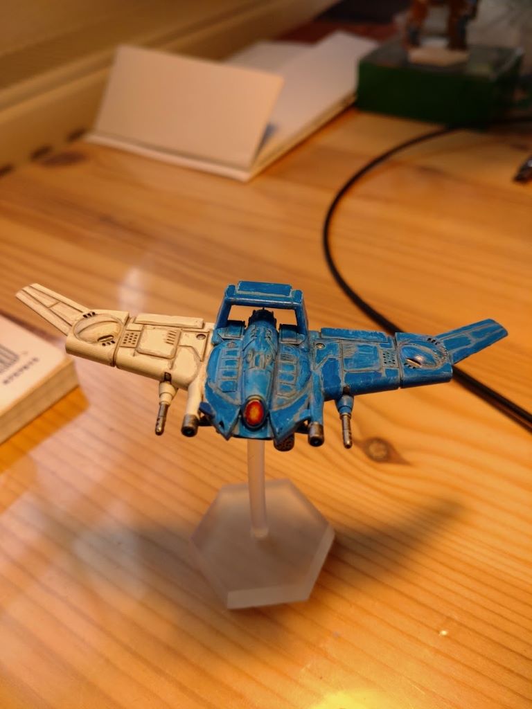 Грунт Vallejo White Prime, база Vallejo Game Color Magic Blue и Army Paints Matt White, проливка Vallejo Sepia, drybrush и детализация AK Steel & Gun Metal, AK Medium Grey, Deep Blue & Sky Blue, Vallejo Scarlet Red & Bloody Red, Gold Yellow & Pale Yellow.