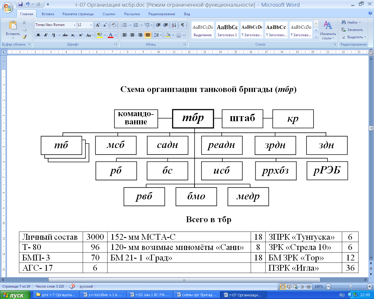 Мотострелковой (танковой) бригаде, наступающей в первом эшелоне армии, указываются: