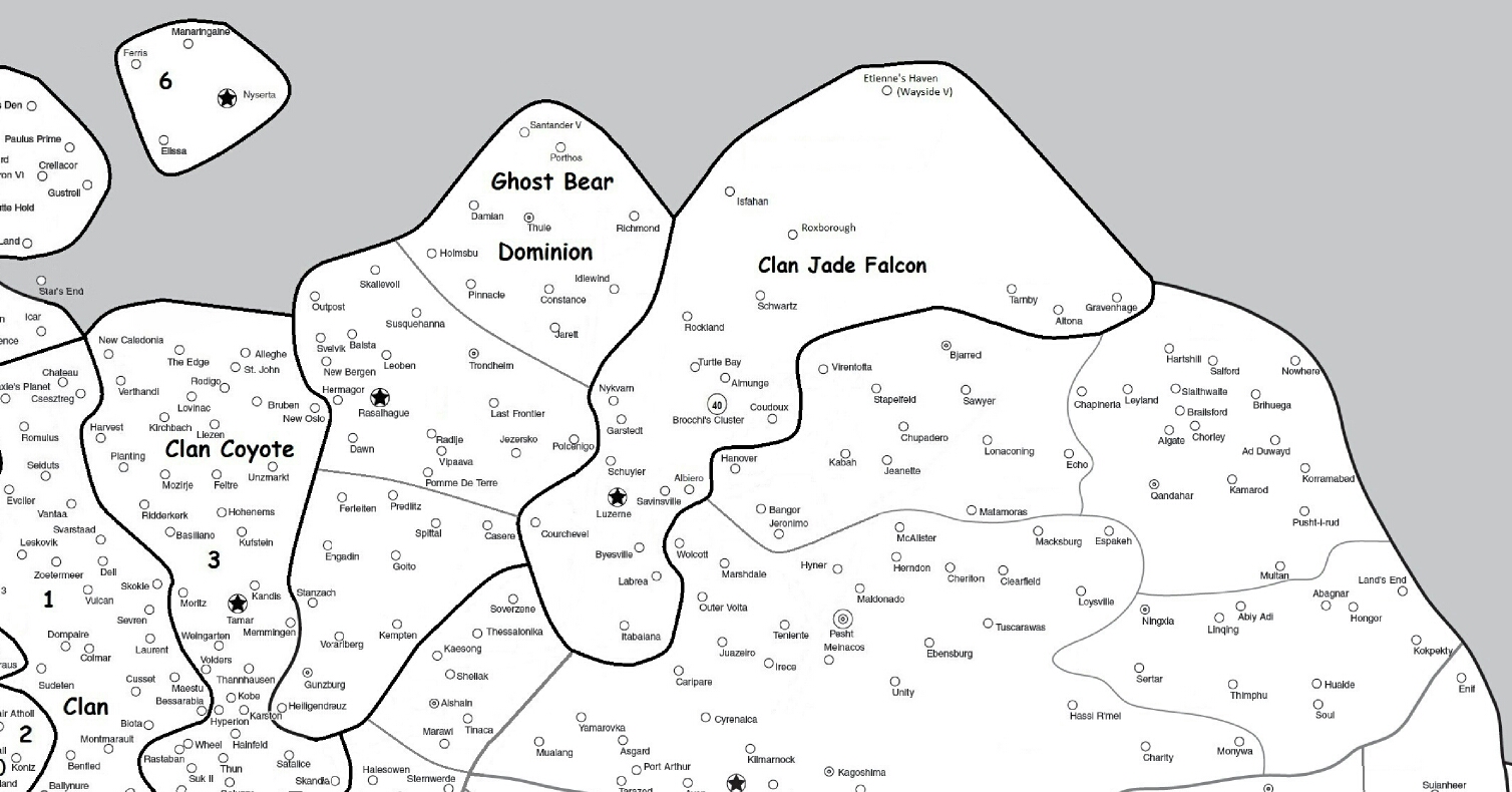 В течение 70/73-го годов совместное драконо-комгвардейское наступление отбросило медведей к дуге Форальберг -- Гойто -- Шпитталь -- Казере. Койоты успели продвинуться до Гансхорена -- Симингтона -- Аккрингтона, но в 73-м с правого фланга по ним ударили собранные в кулак Сабиной Штайнер полковые боевые команды LCAF, с левого -- части DCMS под общим командованием Грэма Курита, воеводы Тукейидского. Тут койотам приходится несладко, особенно в свете потери стратегических тылов в Кланспейсе; спасает лишь поддержка вороньего флота -- превосходство в космосе, но и оно постепенно стачивается, сходит на нет.