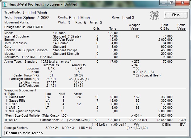 Расплатой за рекордные скоростные показатели стало всё остальное: почти символическая бронезащита, которую обеспечивает единственная тонна ферро-волоконной брони и отсутствие оружия. Живучесть «делирия» на поле боя обеспечивают его скорость, маневренность, а также зауженный силуэт и светополяризационная система «хамелеон», затрудняющие прицеливание по нему. Прибор целеуказания, установленный в голове меха ниже пилотской кабины, заменяет ему вооружение; как неоднократно заявляла Сельма (Кристи), «оружие лёгкого меха – огневая поддержка товарищей».
